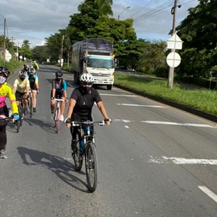 4.Respetar la distancia de seguridad: Circulemos a 10 metros de distancia el uno del otro. De nada vale una distancia de 2 metros en casos de estornudos, sudor y con una respiración fuerte y acelerada. Si nos encontramos con algún amigo o conocido hay que resistir la tentación de juntarse abrazarse y preguntar por la familia. Lo mejor es saludarse desde la distancia, un breve momento y continuar la actividad en solitario. En las fotos el grupo Mujeres_mtb pereira quienes nos facilitaron imágenes de su rodada esta mañana de domingo 17 de mayo
